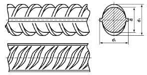 Для арматуры периодического профиля (рифленой) в стандарте используют понятие номинальной площади поперечного сечения: это площадь, равная площади гладкого круглого стержня того же номинального диаметра. Номинальный диаметр в ГОСТ тоже определён не «по ребрам», а как диаметр гладкого круглого проката, равновеликого по площади поперечного сечения.